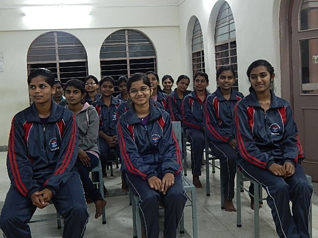 STUDENTS OF MILITARY GIRLS HOSTEL SOLAPUR SEATED FOR MONTHLY MEETING ORGANISED BY SMT SANDHYA